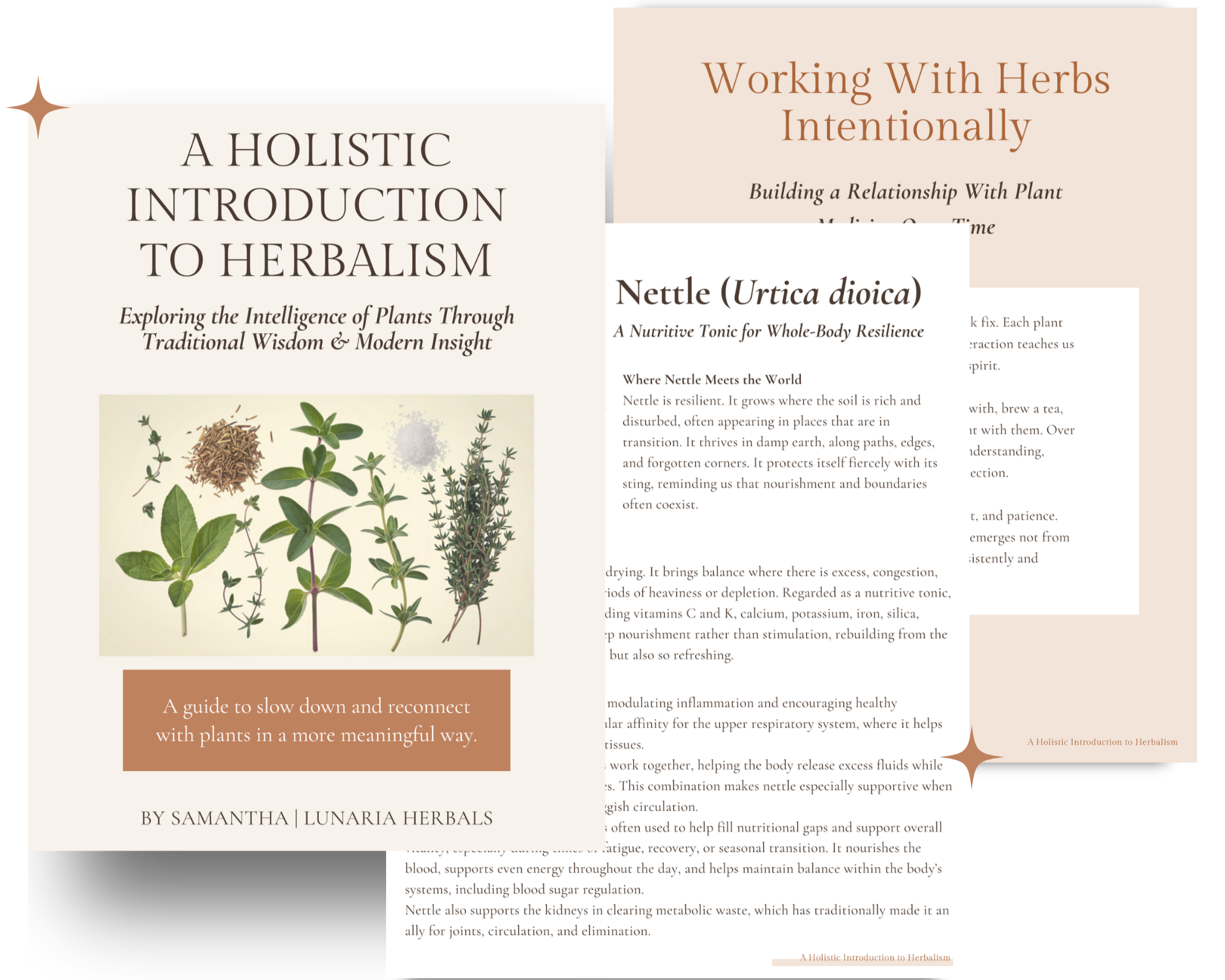 If you’re looking for a simple way to learn more about some staple herbs, I have a free herbalism guide where I cover in-depth about 4 of my favorite plants from traditional wisdom to modern day use →